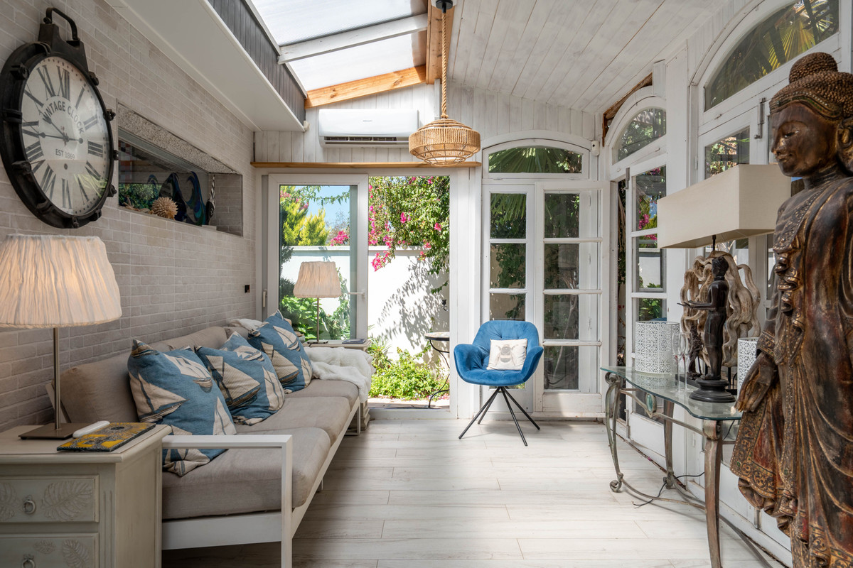 Bright, open-plan interiors filled with natural light and sweeping views of the Mediterranean