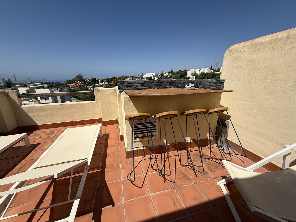 It has a communal pool just a few steps away from the apartment and only a 1.5 km walk from the nice beach and Cabopino Puerto where you find restaurants and bars, 25 minutes drive from Malaga airport and 10 minutes drive from the center of Marbella. The house comes with a parking place in front of the house (driveway).