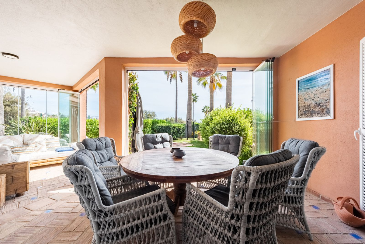 Deze uitzonderlijke halfvrijstaande villa is een zeldzaam pareltje in de prestigieuze strandwijk La Perla de la Bahía, direct naast de exclusieve Finca Cortesin Beach Club. Als een van de slechts drie villa's in de hele urbanisatie, de rest zijn appartementen, biedt deze woning de unieke sfeer van een privévilla met directe toegang tot het strand en de boulevard, waar chique restaurants op loopafstand te vinden zijn.