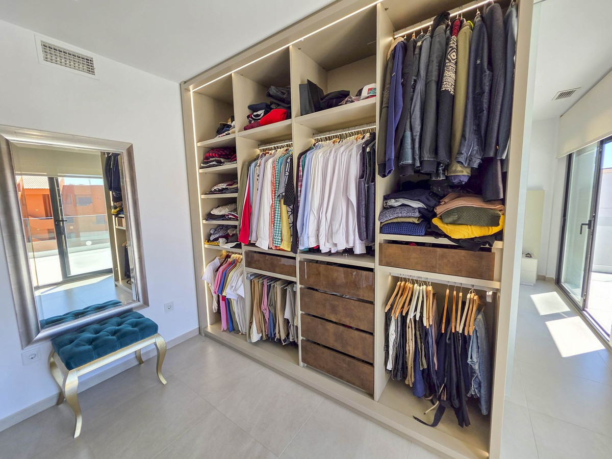 De woning heeft een bebouwde oppervlakte van 168 m², verdeeld over lichte, open ruimtes. Er zijn 3 ruime slaapkamers en 3 complete badkamers, hoewel de woning oorspronkelijk ontworpen was voor 4 slaapkamers, wat eenvoudig kan worden omgebouwd indien meer ruimte nodig is. De hoofdslaapkamer beschikt over twee grote inloopkasten, voor maximaal comfort en opbergruimte.