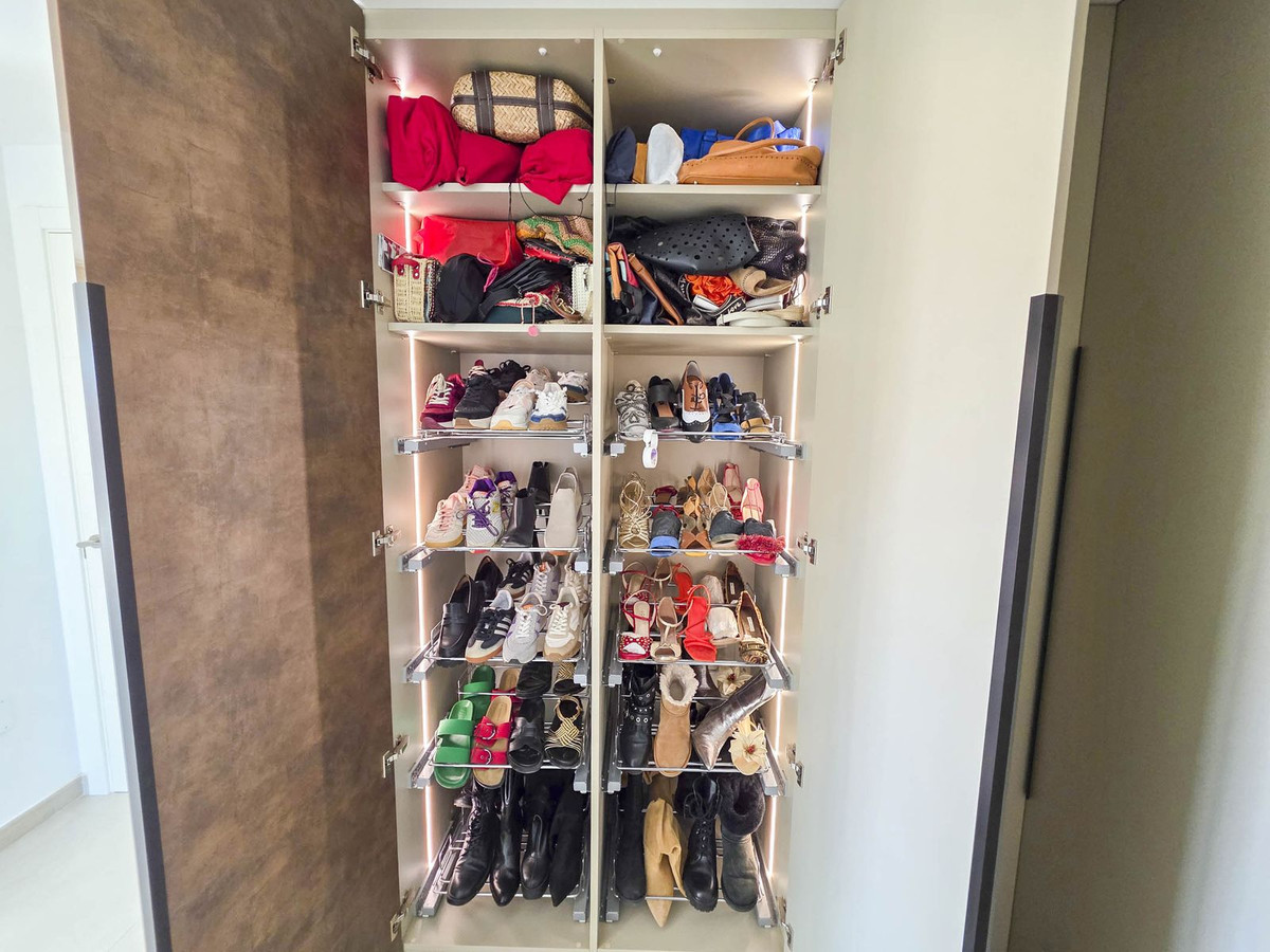 De woon-/eetkamer grenst aan een open keuken die onlangs volledig is gerenoveerd en is uitgerust met hoogwaardige Neff-apparatuur, wat zorgt voor een moderne, functionele en elegante stijl. Verder zijn er ingebouwde kasten met verlichting en een glazen terras, zodat u het hele jaar door van de buitenruimte kunt genieten.