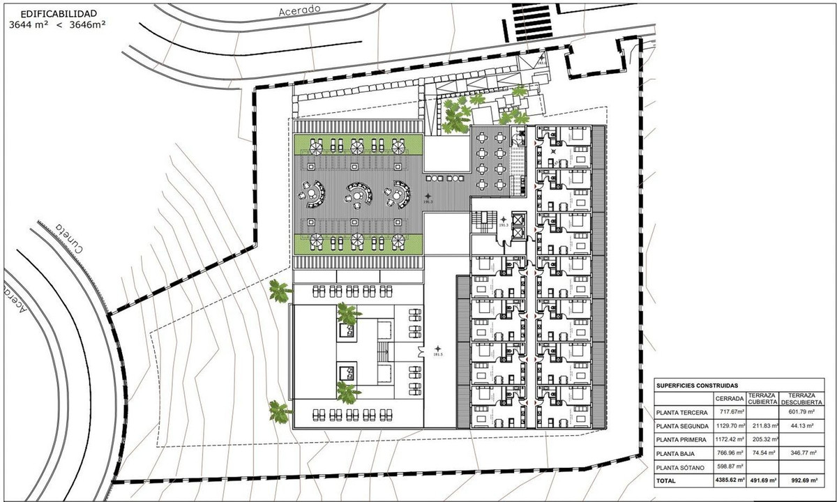 Het betreft een perceel bestemd voor apparatuur/commercieel gebruik, met een totale oppervlakte van m² en 3.650 m² bebouwbare ruimte, met een haalbaar project voor de bouw van maximaal 51 toeristische appartementen.