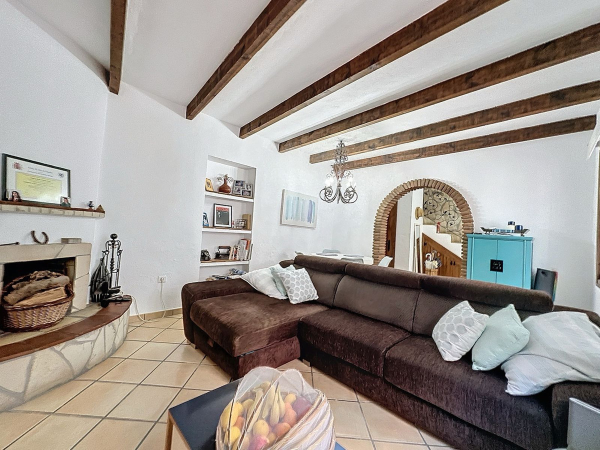 Bij binnenkomst in het huis, een elegante hal die de verschillende ruimtes vloeiend verdeelt. De ruime woon-eetkamer valt op door zijn lichtinval en ruimtelijkheid, en heeft een open haard die niet alleen warmte biedt, maar ook een romantische en gastvrije toets aan de ruimte geeft.