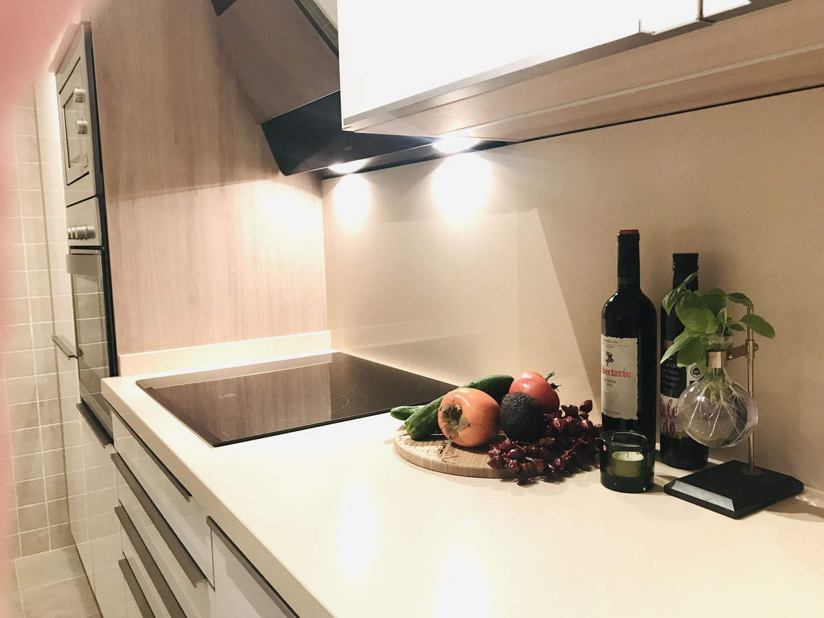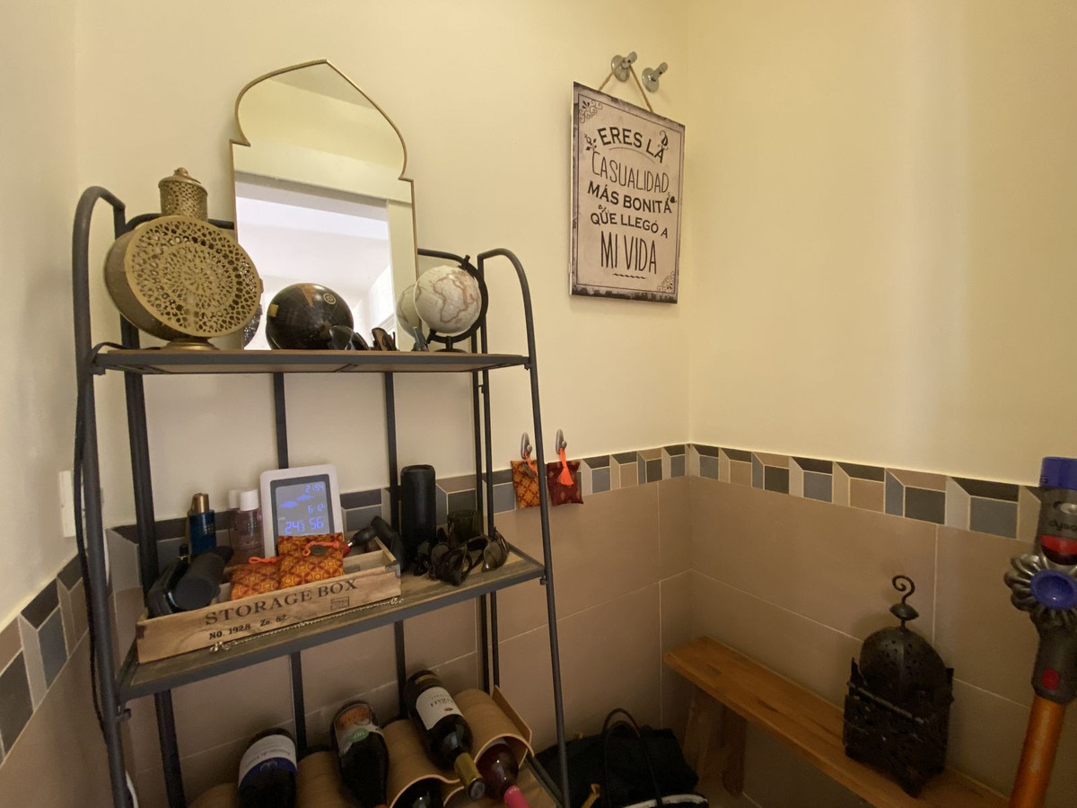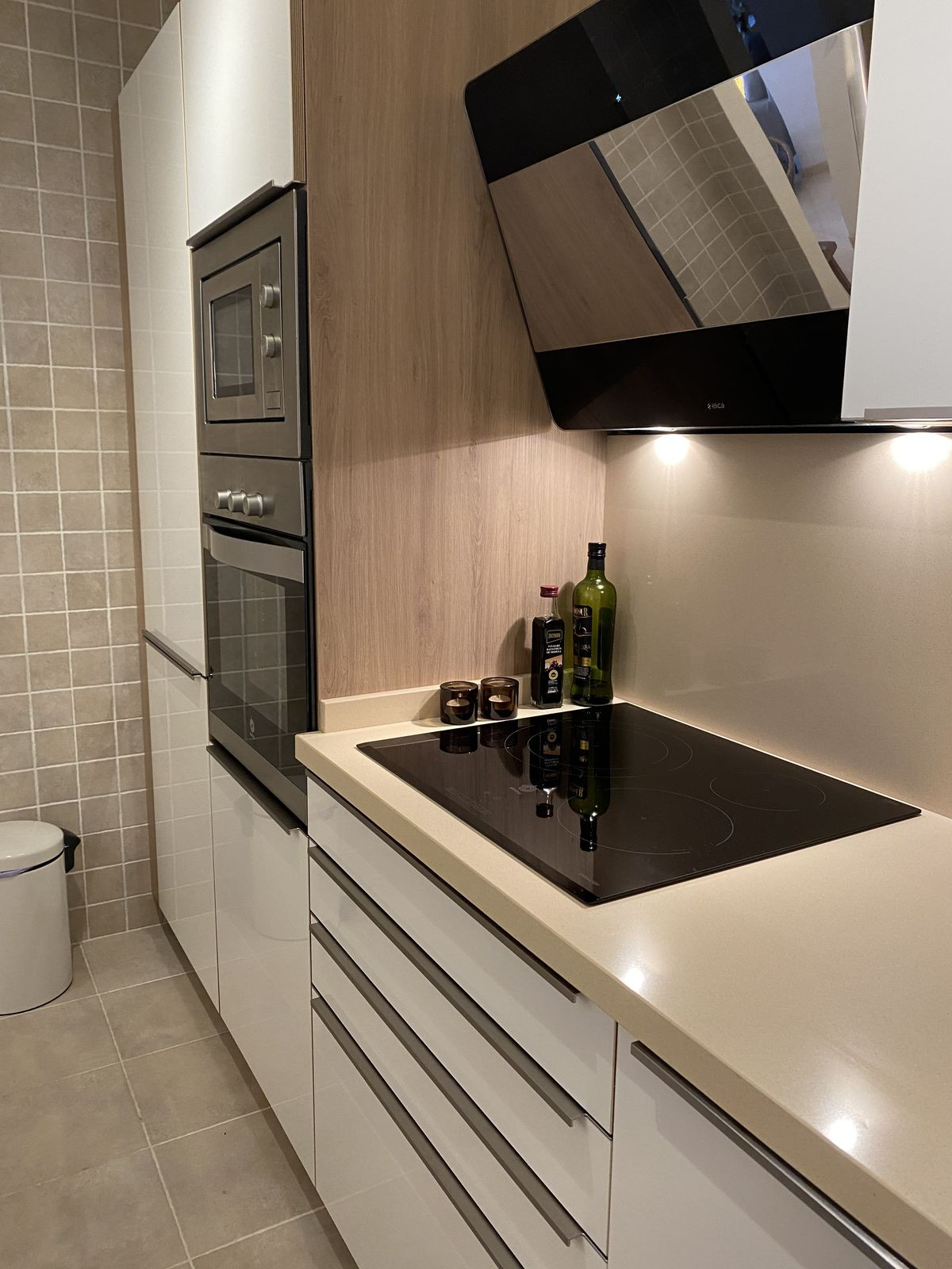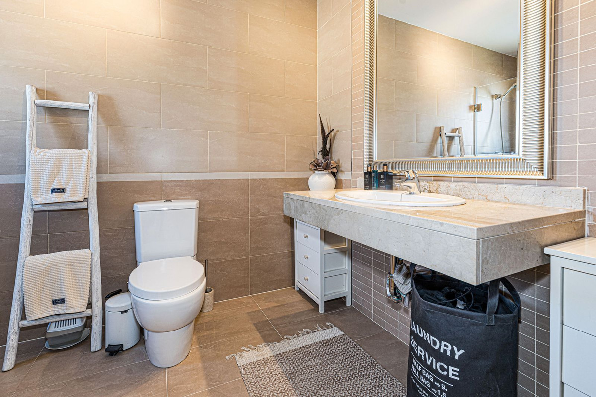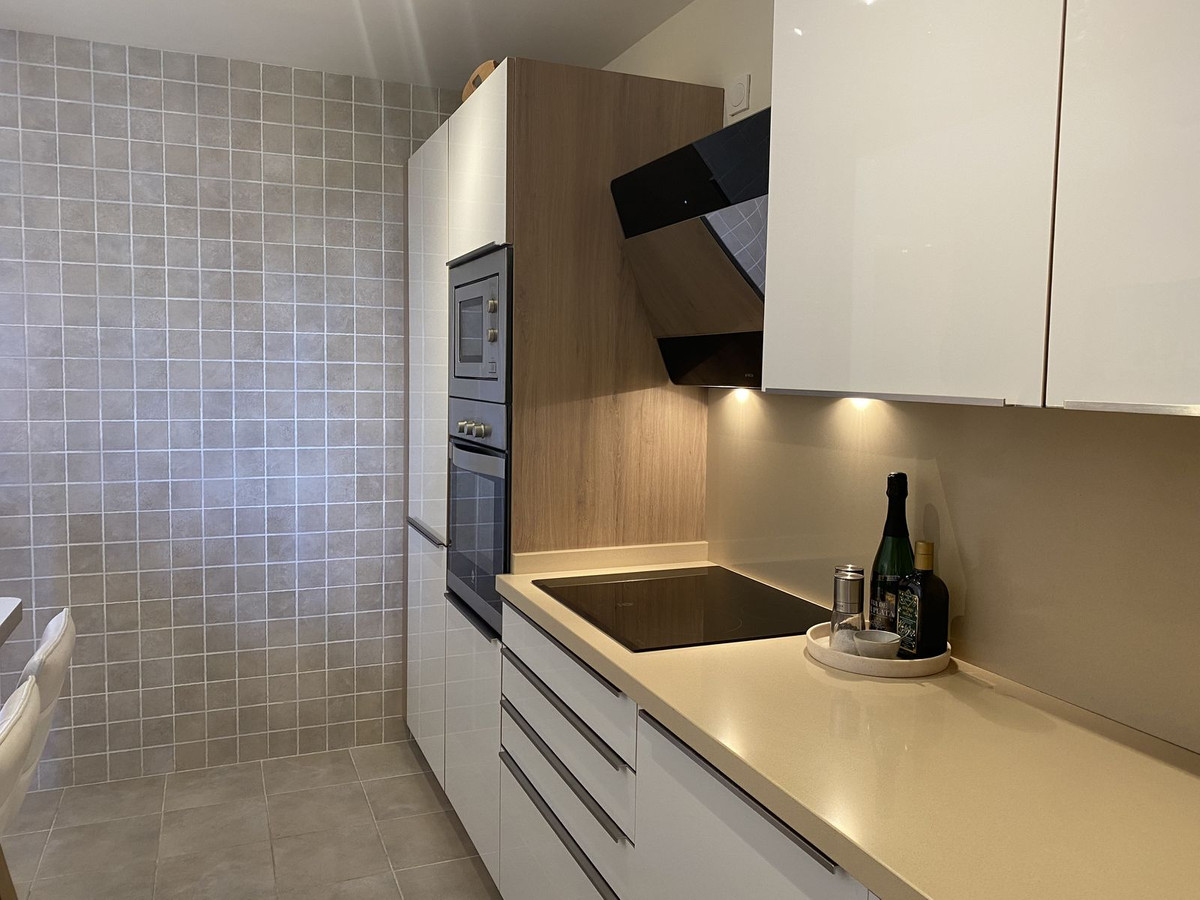 De moderne keuken is volledig uitgerust en praktisch ingedeeld. De hoofdslaapkamer heeft een eigen badkamer en veel opbergruimte, terwijl de logeerkamer ruim is en eveneens is voorzien van kledingkasten. Het gastentoilet wordt momenteel gebruikt als berging, maar kan eenvoudig worden gerenoveerd. Een ondergrondse parkeerplaats met lift is bij de prijs inbegrepen, wat het dagelijks leven comfortabel en veilig maakt.