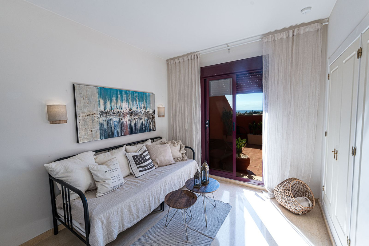 Dit penthouse is gelegen in een rustige en beveiligde gated community met een zwembad en prachtig aangelegde tuinen. Binnen enkele minuten bereikt u de zandstranden, de jachthaven van Puerto de la Duquesa met restaurants en bars, en het charmante vissersdorpje Castillo de la Duquesa. Voor golfliefhebbers is La Duquesa Golf & Country Club vlakbij, en de prestigieuze golfbanen van Estepona en Sotogrande liggen op slechts 10 minuten afstand. Marbella en Gibraltar zijn in 25 minuten te bereiken en de luchthaven van Malaga in minder dan een uur.