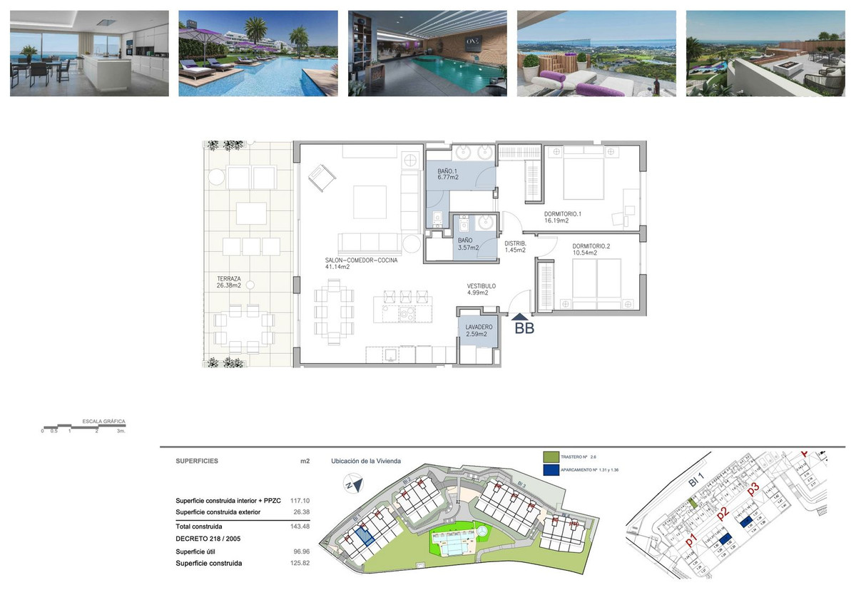 De prijs van het appartement is inclusief twee parkeerplaatsen, wat in de populaire Costa del Sol van onschatbare waarde is. Een extra berging biedt een oplossing voor het opbergen van seizoensartikelen, sportuitrusting of bagage. De totale bebouwde oppervlakte bedraagt meer dan 143 vierkante meter, waardoor dit appartement zeer ruim is in verhouding tot de bruikbare oppervlakte.