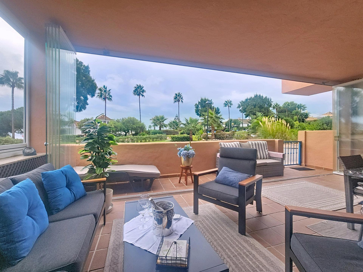 Dit appartement op de begane grond ligt in de prachtige urbanisatie Duquesa Suite en valt op door zijn rust, licht en aangename buitenruimte.