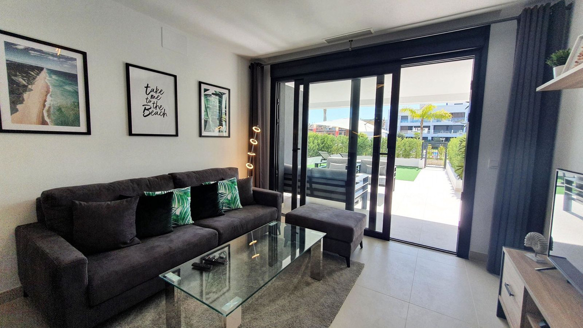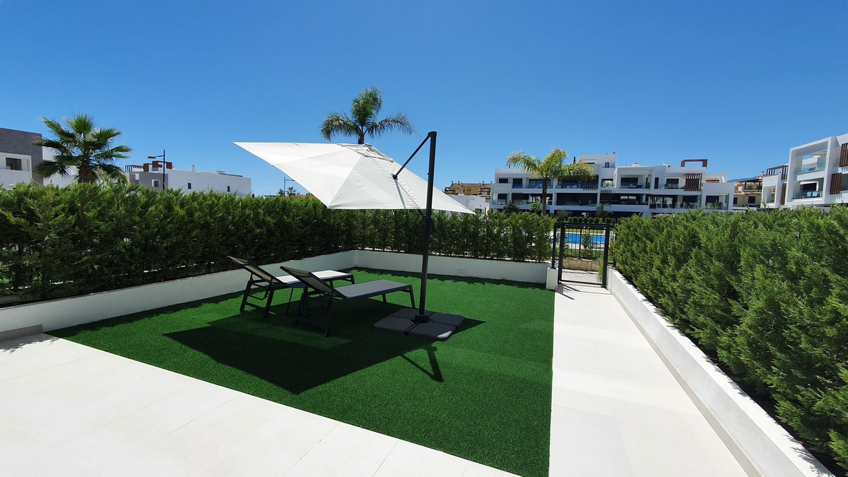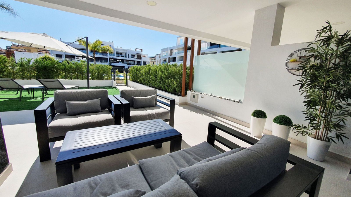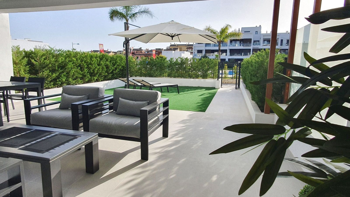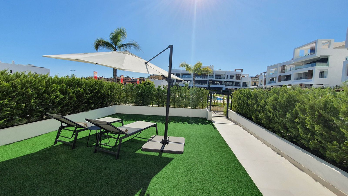 Dit prachtige appartement op de begane grond in Los Miradores del Sol Fase I combineert op perfecte wijze eigentijdse luxe met mediterraan binnen- en buitenleven aan de exclusieve New Golden Mile van Estepona. Met 92 m² aan elegante binnenruimte en een indrukwekkende 84 m² aan privéterrassen en tuinen, is het ideaal gelegen op slechts een korte loopafstand van het strand, winkels en restaurants.