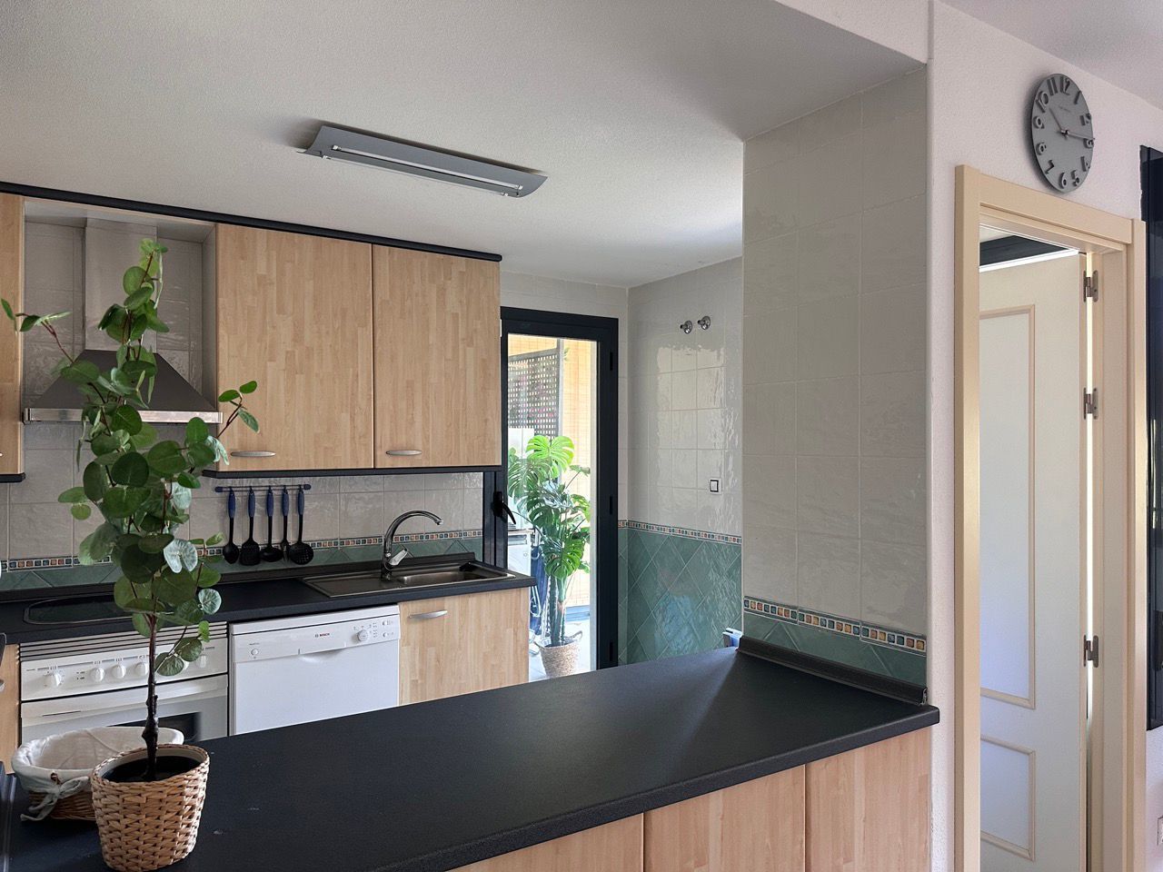 The living-dining room with an open-plan kitchen connects to a lovely terrace offering beautiful views of the pine grove and the sea, in the Cala de Finestrat area. In addition, it includes a utility room and a spacious parking space.